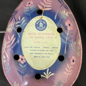 Vintage 1950's Mattel Tin Windup Easter Bunny Music Box Egg