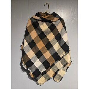Sonoma Goods For Life Plaid Hooded Poncho Wrap Black Camel OneSize NWT WSN49LP05