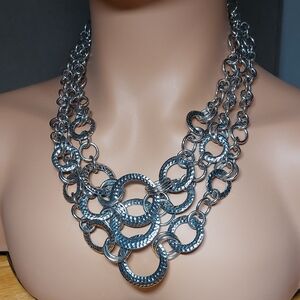 Beautiful necklace set by Lia Sophia. This can be worn as one, two, or 3 necklaces depending on the look you want Silvertone and in great preowned condition.