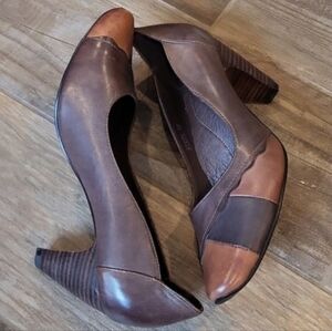 Absolutely Beautiful Bohemian Vibes NWB Spring Step Mirth Leather Pumps in Two-Tone Brown, Size 37, Size 7, 3 inch Heel