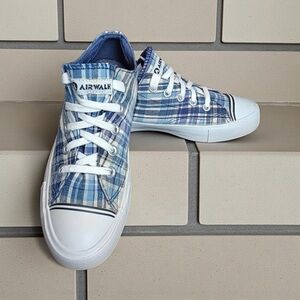 Airwalk Women's Size 7 Blue White & Tan Plaid Retro Low Top Lace Up Sneakers