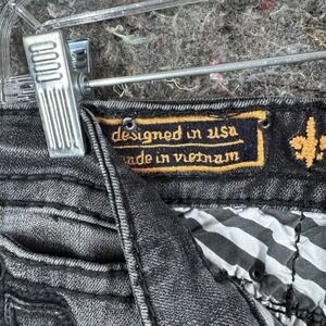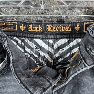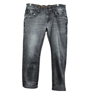 Rock Revival Jeans Mens 33 x 25 Leeroy Black Leather Patch Slim Straight