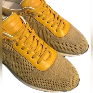 The LV Yellow Damier (Unisex) Graphite Pattern Sneakers in US Men's size 7.5 and Women's size 9 are stylish and versatile shoes perfect for casual occasions. Featuring a solid yellow color with a round toe and lace-up closure, these sneakers are made with leather lining and a linen blend upper material for comfort and durability. Designed by the renowned brand Louis Vuitton in Italy, these sneakers also have a fabric outsole to provide a trendy and comfortable option for the summer season.
