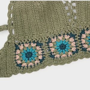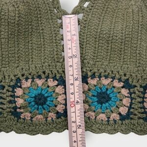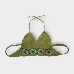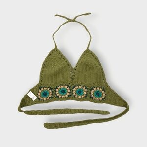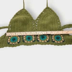 Vtg Crochet Crop Top Womens Bralette Adjustable Hippie Festival Boho Green Flora