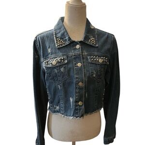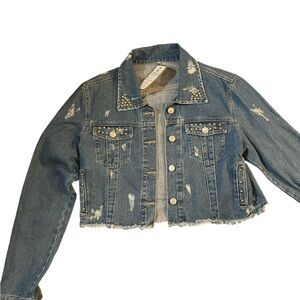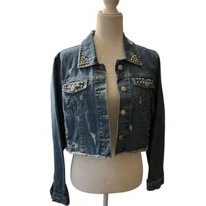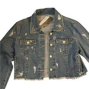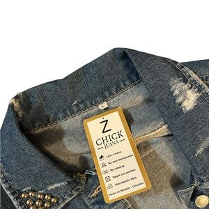NWT Z Chick Distressed Embellished Cropped Jean Jacket Size Large