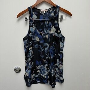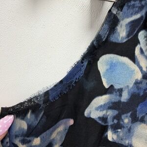 The Rebecca Taylor Floral Silk Sleeveless Tank Top in size 6 exudes feminine whimsy with its charming floral pattern and frayed edges accents. Made from 100% silk, this pullover tank features a scoop neck and is perfect for casual occasions during the summer and spring seasons. The black, blue, and white color palette adds a touch of elegance to this stylish piece from the renowned Rebecca Taylor brand. Ideal for women looking for a chic and trendy addition to their wardrobe.