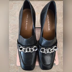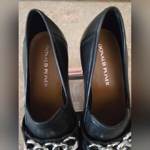 Donald J. Pliner Black Leather Loafers with Silver Chain Size: 9.5