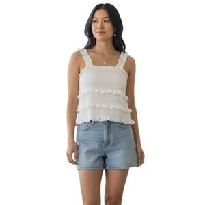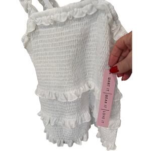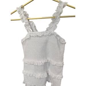 Crave Fame White Tank Top Ruffle Straps Smocked Bodice XS NWT