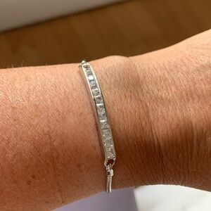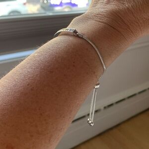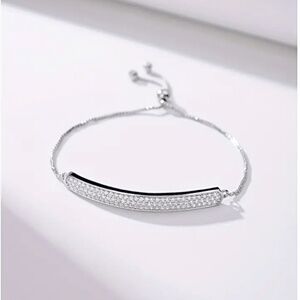 This sharp adjustable pave' bar bracelet will look great with any casual outfit.