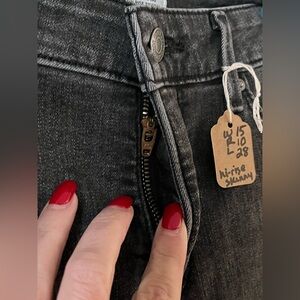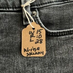 EUC excellent condition & quality! Dark gray denim jeans. Sleek and versatile. Perfect for any occasion. Holes at knees, distressed. Measurements on brown tag. Please see measurements to insure a good fit. Frayed hem. 28x28