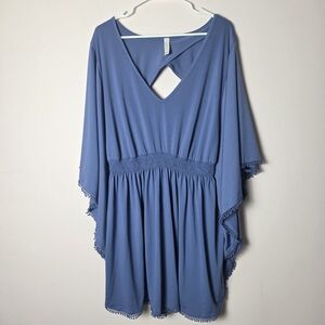 Cacique Swim Cover Up Dress Blue Kimono Sleeve Cutout Back Plus Size 22/24 Flowy