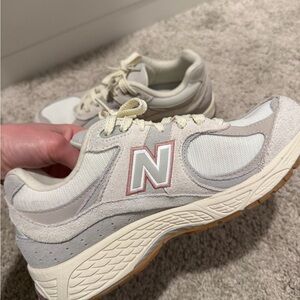 WORN ONCE, like new New Balance 2002r sneakers (color “Sea Salt, Reflection, Brighton Grey, and Pink Moon”). Size 8.5. Only wore once, in pretty perfect condition, they just didn’t fit. Does not come with box