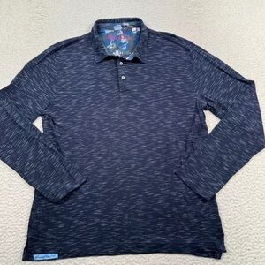 Robert Graham Classic Fit 4XL Thales Knit Long Sleeve Polo Blue Heathered $138