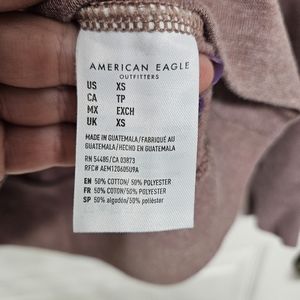 This is an American eagle top made to look vintage and 90s rnb rap hip hop feel. maroon color with small evidence of wear with mild pilling. long sleeve pullover top. extra small but oversized so could fit up to medium in my opinion. crew neck sweater top. please see measurements. band tee festival rnb rap hip hop grunge indie y2k 90s.