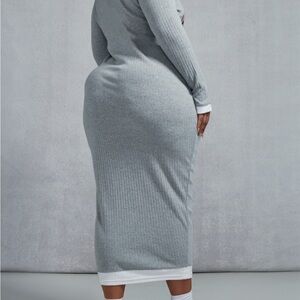 PRETTYLITTLETHING Plus Grey Marl Printed Rib Zip Up Midi Dress