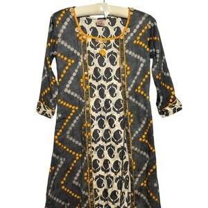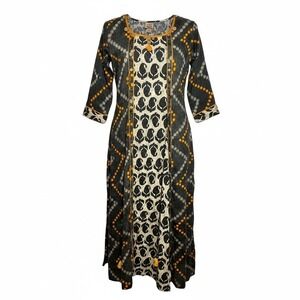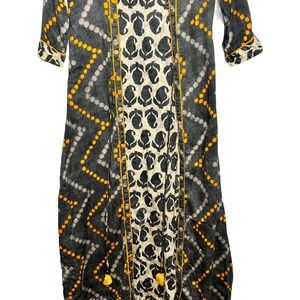 Zoie Dress Womens Actual XS Gray Orange Midi Bohemian Tassels Cotton Sheath - AC