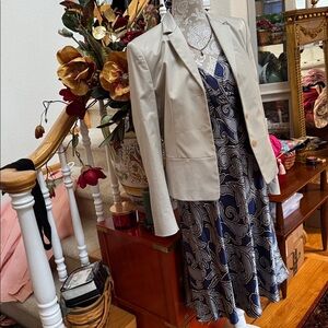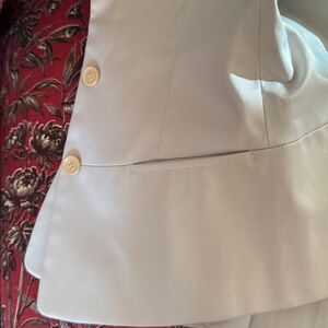 Henri BENDEL Beautiful SILVER & LIGHT GRAY SATIN JACKET MADE IN ITALY, in perfect, new condition. LUXURIOUS SILVER SATIN LINING. USA SIZE 8. Extra buttons. Compliments the JONES N. Y. SILK HALTER DRESS. Brand New with tag.