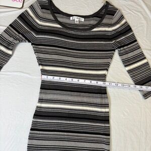 Say What? Womens XL Striped Ribbed Knit Bodycon Sweater Dress 3/4 Sleeve Grey