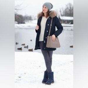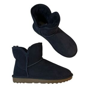Cozy Navy Blue Mini Shearling Ankle Boots 6