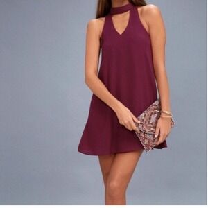 Lulus Womens XS Burgundy Halter Neck Keyhole Shift Dress Wine Berry Mini G