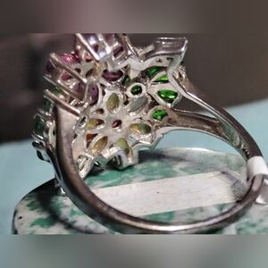 This stunning Sterling silver ring features a vibrant array of 100% natural gemstones,