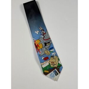 Up for sale is a vintage 1997 Looney Tunes "Stamp Collection" necktie featuring Bugs Bunny in a classic ACME rocket scene.