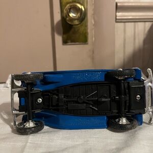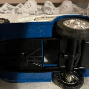 Classic model bank truck with white and blue colors. Features 'N.H. Geotech' branding. Comes with key on bottom truck to keep the money in bank securely. Pre owned.