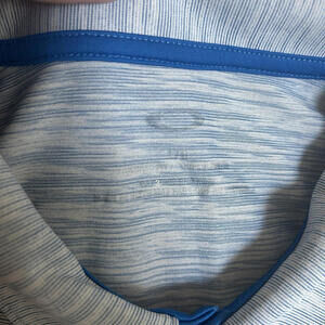 Oakley Men’s Large Polo Golf Shirt Light Stripes Blue. Pre owned but only sign of wear is the lettering inside the collar is fading from washing!