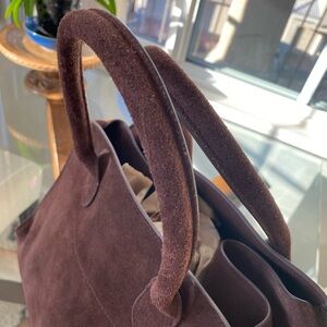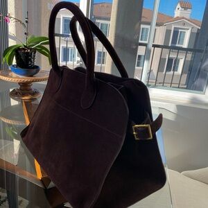 The Row “inspired” Margaux bag in top grained genuine suede. Size large 15”x10.5”x9.5”. Lined in high quality cotton canvas.