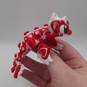 3D Printed Articulated HeartSeeker Mini Dragon and Heart Egg Set. This collectible set features a poseable dragon with heart-themed detailing and a matching decorative winged egg that opens to store the dragon inside. Perfect for desks, sensory play, or as a Valentine -themed gift.