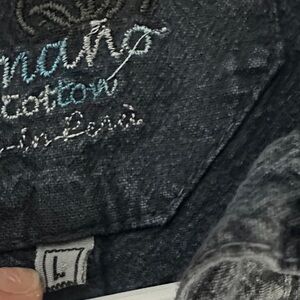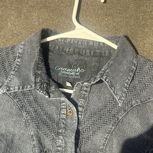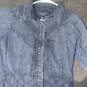 Large 100% Cotton Blue Denim Button-Up Shirt Boho tribal vibes super cute