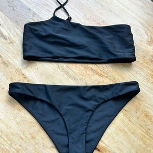 Stylish and sleek black swimwear set for women. Perfect for a day at the beach or pool.