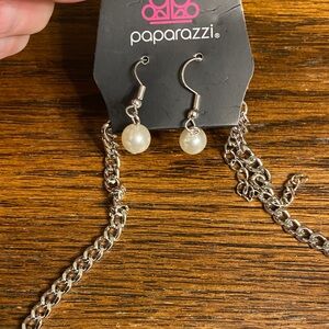 Chic silver necklace with pearlescent floral accents. Matching earrings included. Ideal for any occasion. Lots of sparkle & shine.