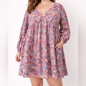 Step out in style with this chic long sleeve floral dress. The vibrant pink and purple hues create a stunning look. Perfect for any occasion.
