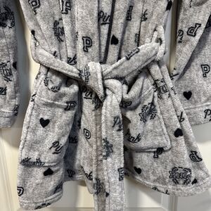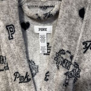 Victoria’s Secret Pink Bath Robe Gray Logo Print Soft Fleece Pockets Sz XS Small