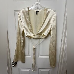 Elegant white maxi two piece set. Features a sleek design with a diamond string to tie the top and diamond accent along waistband. Perfect for evening wear.