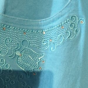 Lavena “Dustworth” Embroidered Capri Pants – Turquoise Size 12