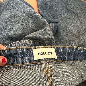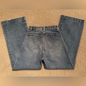 Chic wide-leg design. Features front patch pockets. 100% cotton old school rigid denim. Cool retro wash. Tasteful wear marks on bottom seams and tops of pockets. I have moved the button fastener to make these looser at the waist, as they were a little snug for a 27 before. Small hole (as shown in pics) is covered after fastening. Doesn’t affect the integrity of the denim.