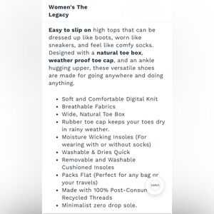 Easy to slip on high tops that can be dressed up like boots, worn like sneakers, and feel like comfy socks. Designed with a natural toe box, weather proof toe cap, and an ankle hugging upper, these versatile shoes are made for going anywhere and doing anything.