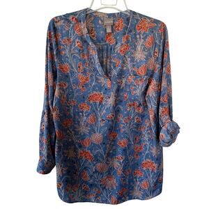 Chico’s Blue Floral lite long tunic floral blouse size XL