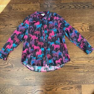 Sundance Equestrian Joy Pearl Snap Horse Print Collared Shirt Purple Size Medium