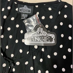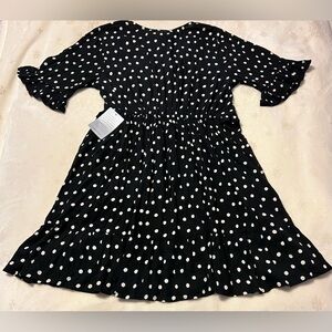 🆕 Angie Black and White Polka Dot Dress, elastic waist Women’s Med NWT