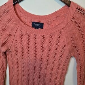 American Eagle Coral Pink 3/4 Sleeve Cable Knit Sweater Size Small
