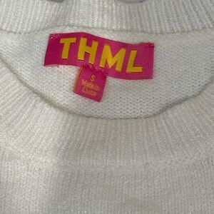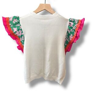 THML Cream Sweater Blouse with Pink and Green Ruffle Sleeves Sz Small