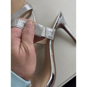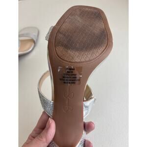 Jessica Simpson Omana Rinestone Strappy Heels Sandals 4” Heel Strap is elastic for stretch and comfort. Some minor peeling around the elastic. Size 8