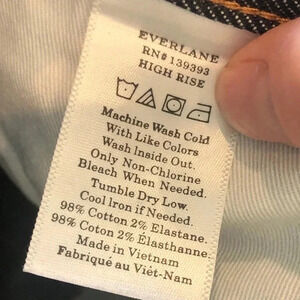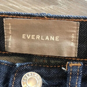 Elevate your denim game with these Everlane high-rise skinny ankle jeans in a dark wash. The cotton and elastane blend fabric with a denim texture provides comfort and stretch, while the slimming and shaping features enhance your silhouette. The 5-pocket design with a button and zip closure and Everlane logo accents add a touch of style to these versatile jeans perfect for any season.