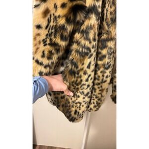 Kiki Love Faux Fur Leopard Print Coat Womens OS Brown Tan Excellent Glam Jacket