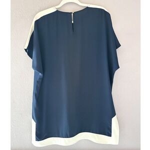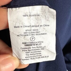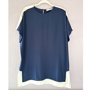 Tory Burch Navy Blue Silk Colorblock Short Sleeve Tunic Top Size Small