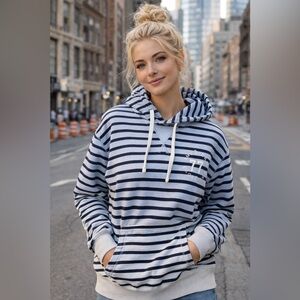American Eagle Outfitters Navy and White Striped Hoodie