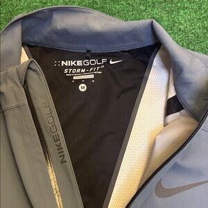 Style: Full Zip Jacket / Weatherproof Windbreaker / Features breathable ventilation inserts / Nike Swoosh on front / "STORM-FIT" printed along front pocket / "NIKE GOLF" printed along inner lining behind zipper